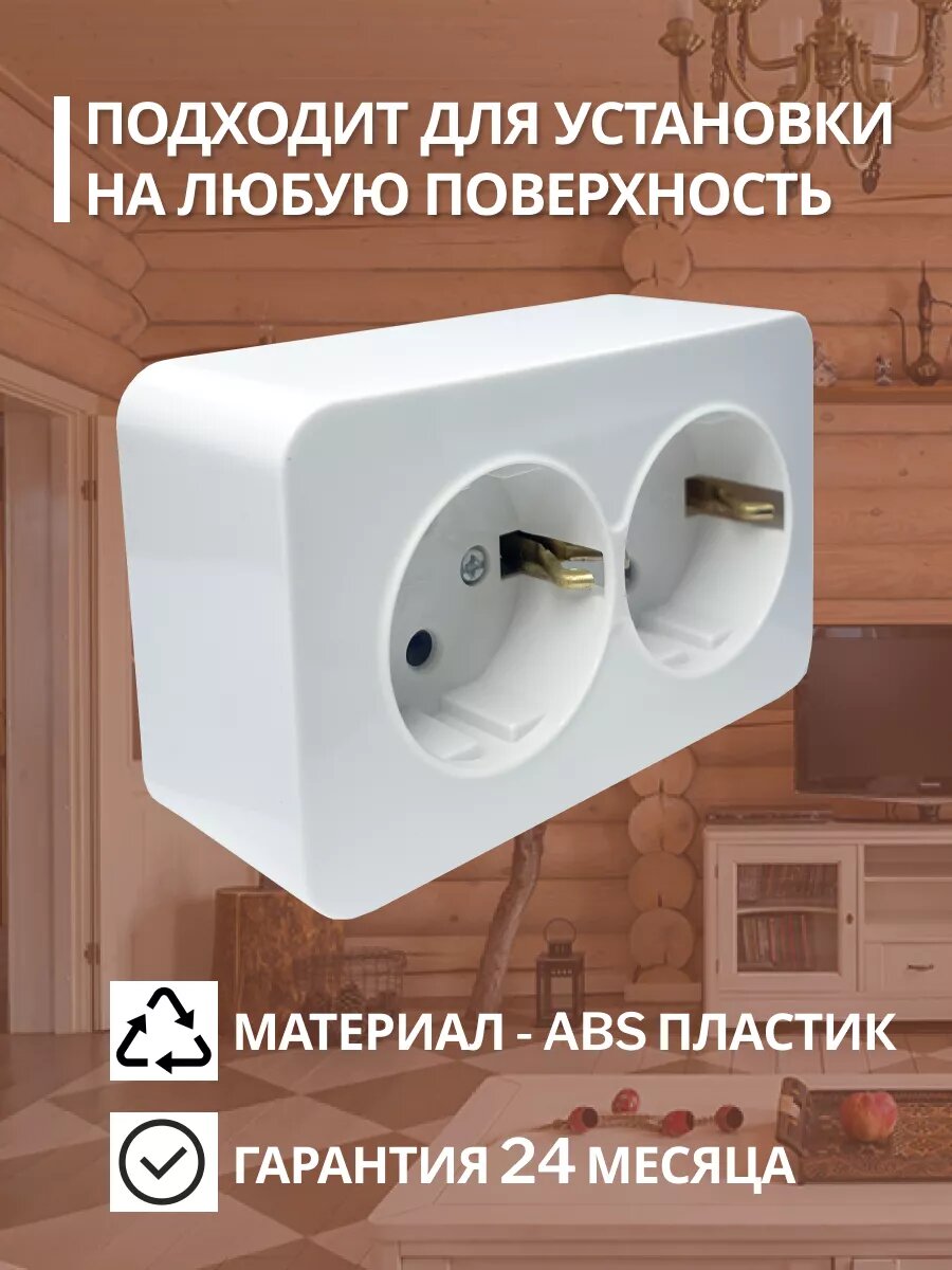 Розетка накладная STEKKER София, 2 гнезда, с заземлением, IP20, белый информация: