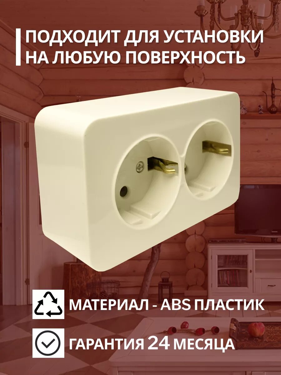 10 цен на Розетка накладная STEKKER София, 2 гнезда, с заземлением, IP20, цвет слоновая кость