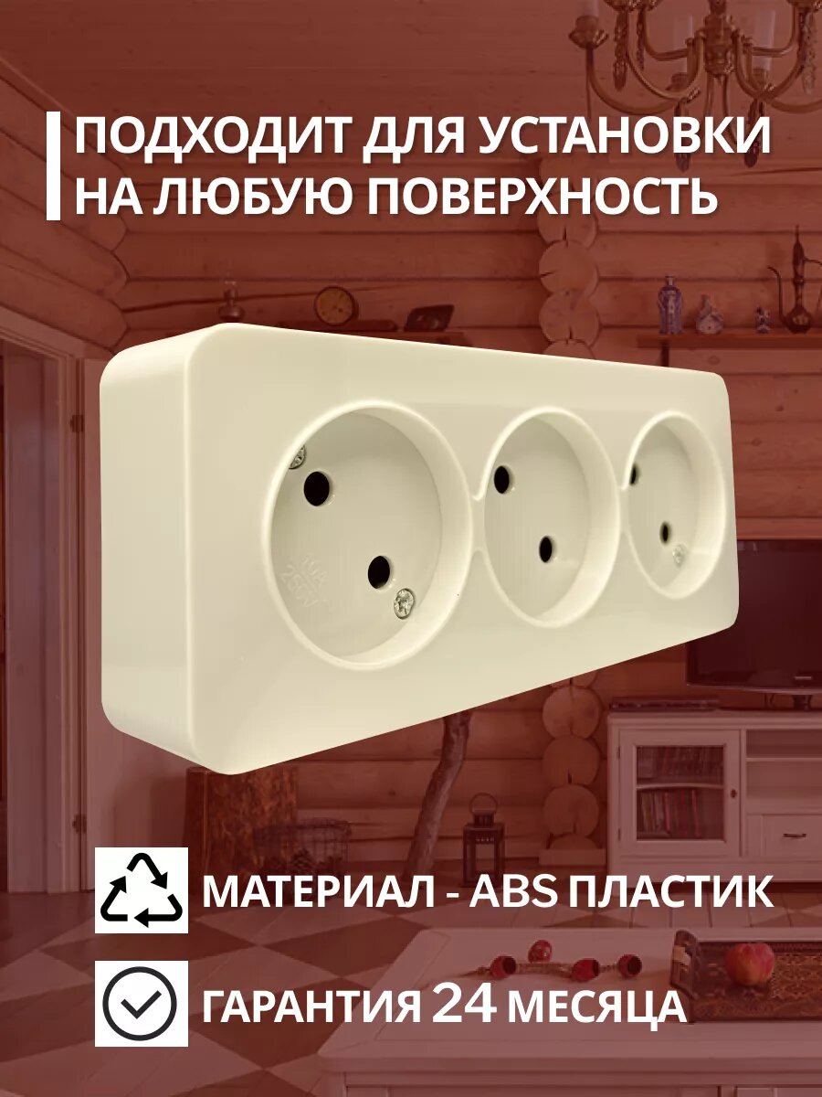 Розетка накладная STEKKER София, 3 гнезда, без заземления, IP20, цвет слоновая кость информация: