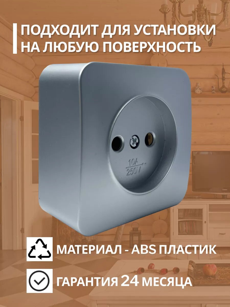Розетка накладная STEKKER София, 1 гнездо, без заземления, IP20, серебро информация: