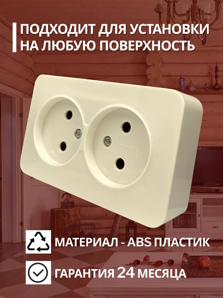 10 цен на Розетка накладная STEKKER София, 2 гнезда, без заземления, IP20, цвет слоновая кость