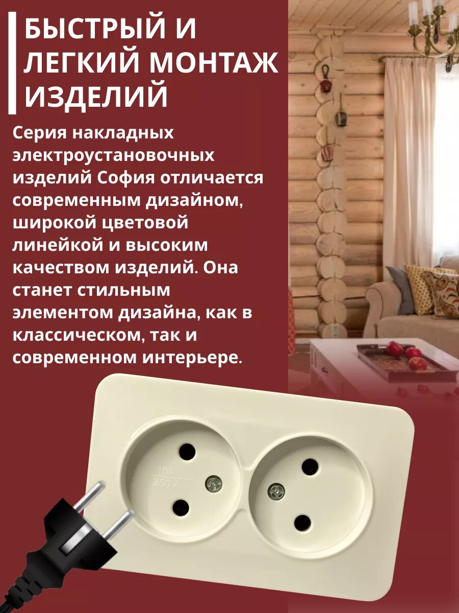 Розетка накладная STEKKER София, 2 гнезда, без заземления, IP20, цвет слоновая кость информация: