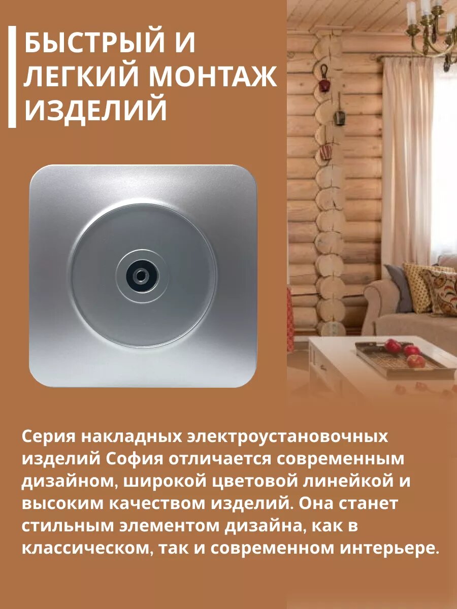 Розетка накладная STEKKER София, телевизионная, IP20, серебро информация: