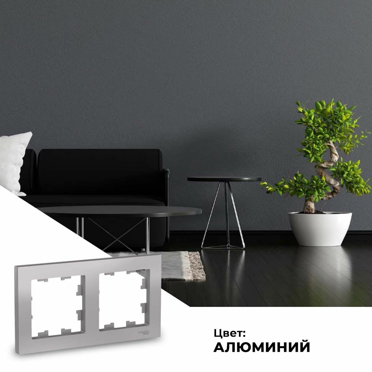 Рамка для розеток и выключателей Schneider Electric / Systeme Electric AtlasDesign на 2 поста универсальная алюминиевая информация: