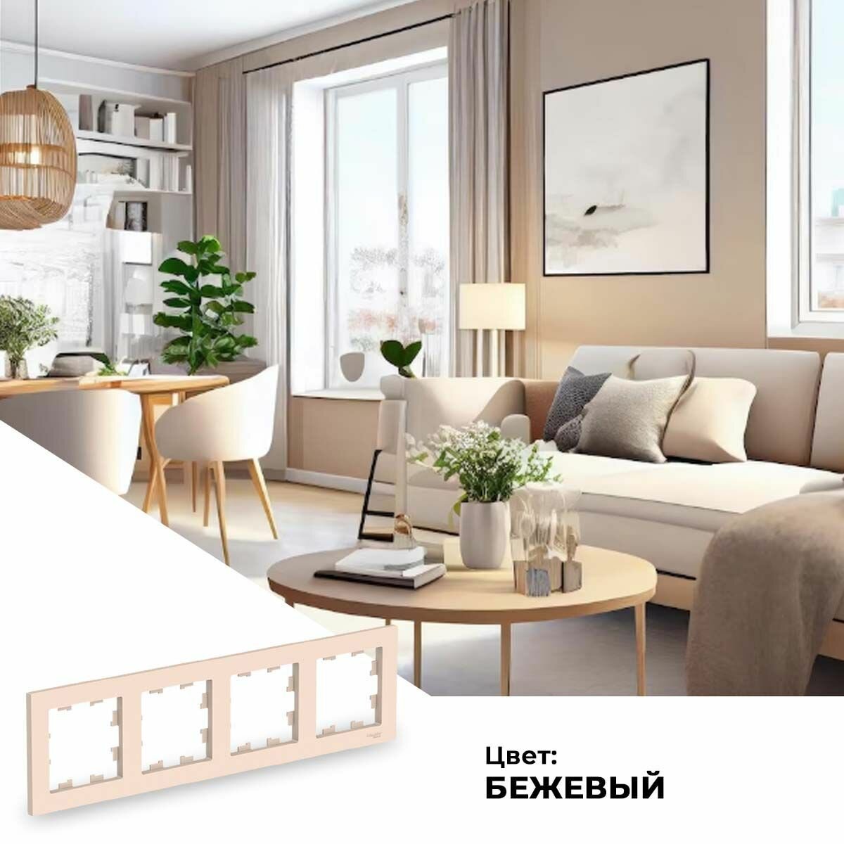 10 цен на Рамка для розеток и выключателей Schneider Electric / Systeme Electric AtlasDesign на 4 поста универсальная бежевая