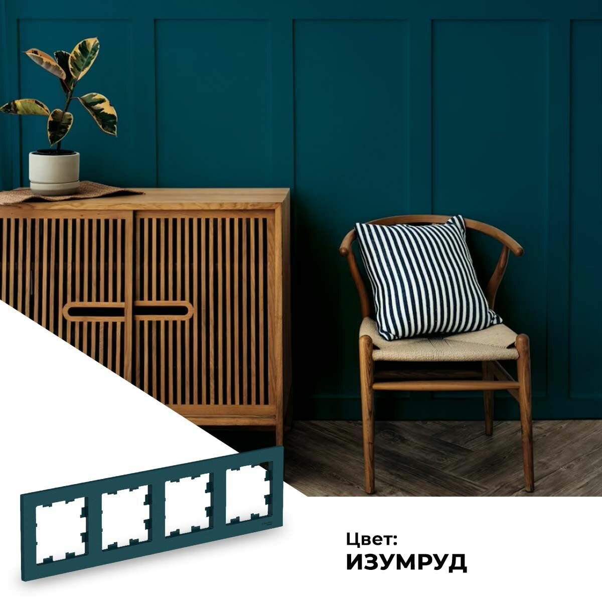 Рамка для розеток и выключателей Schneider Electric / Systeme Electric AtlasDesign на 4 поста универсальная, изумруд информация: