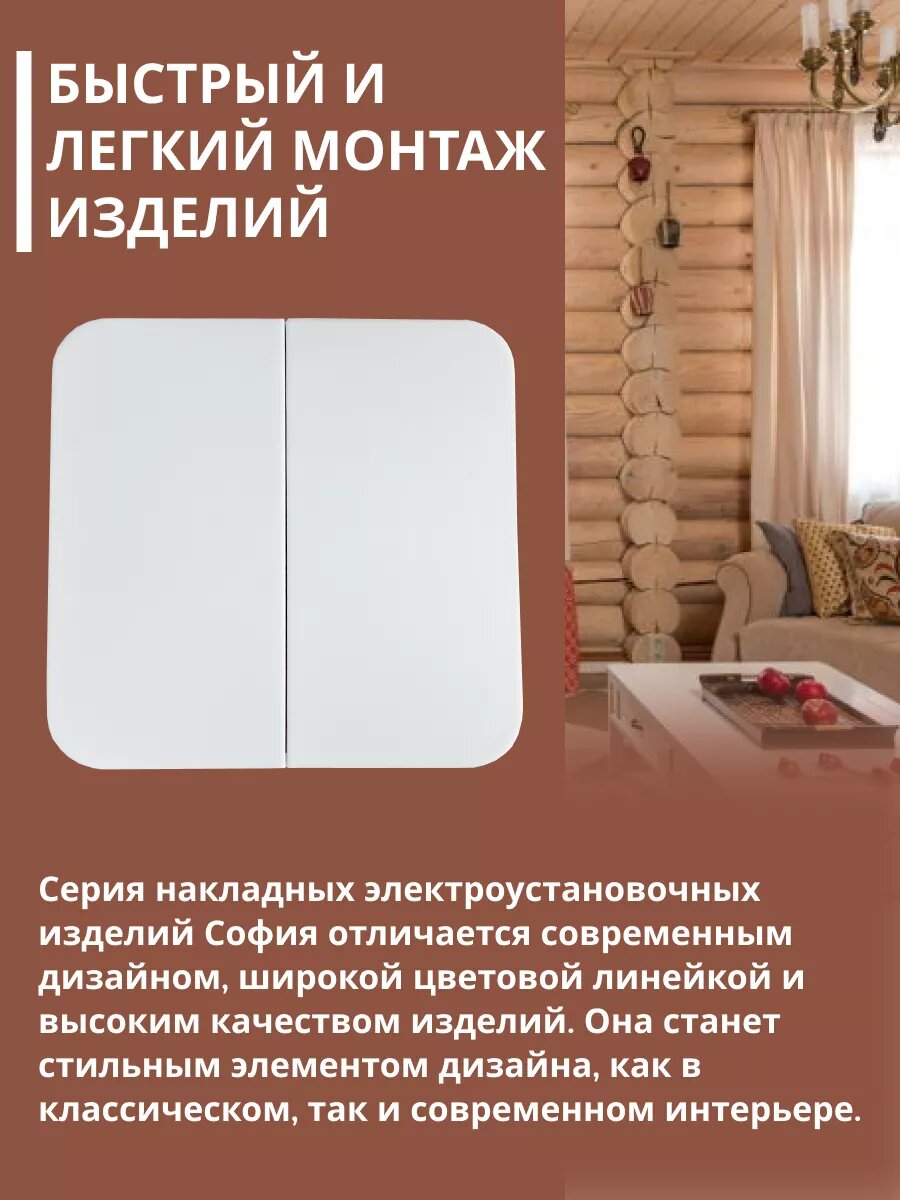 Выключатель STEKKER София, двухклавишный, накладной, белый информация: