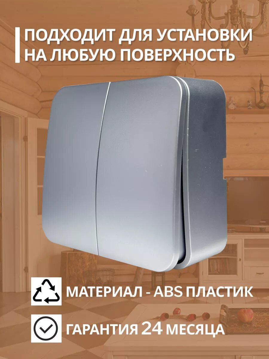 10 цен на Выключатель STEKKER София, двухклавишный, накладной, серебро