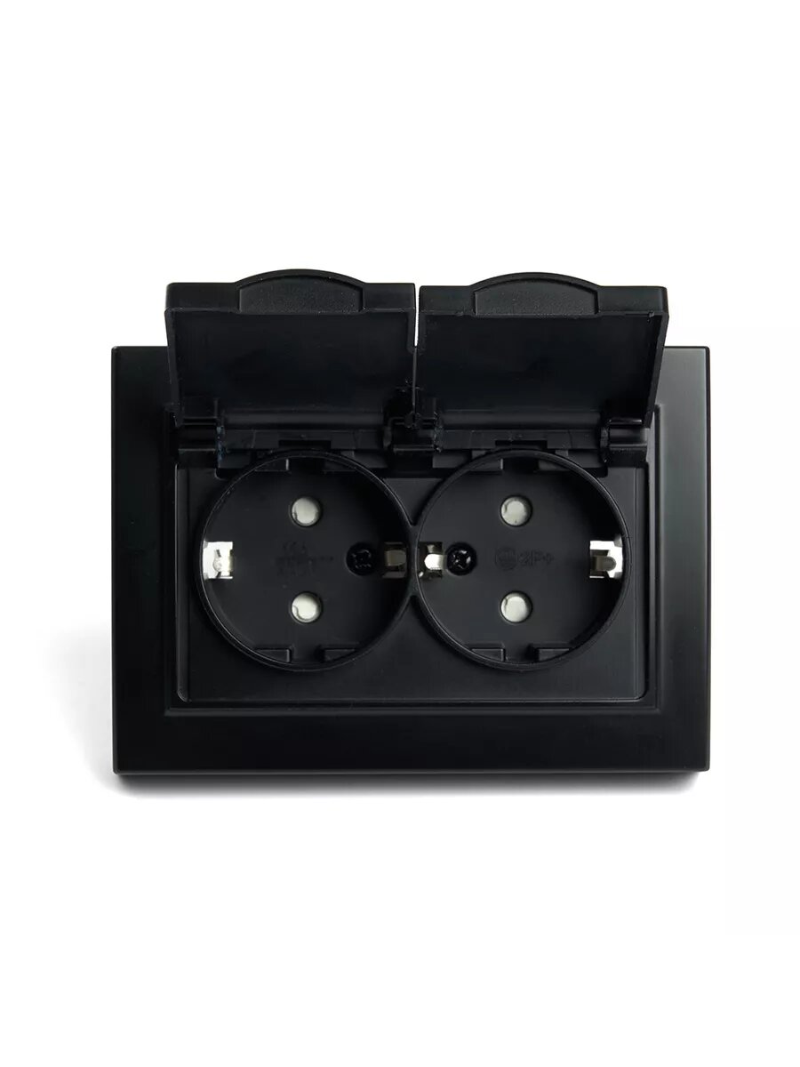 Розетка STEKKER Эрна, встраиваемая, двойная, с крышкой и заземлением, черная информация: