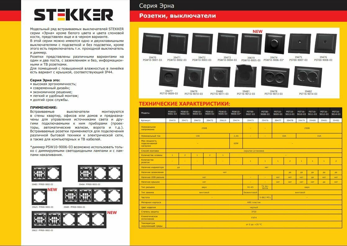 Розетка STEKKER Эрна, встраиваемая, компьютерная RJ-45, черная 303 ₽