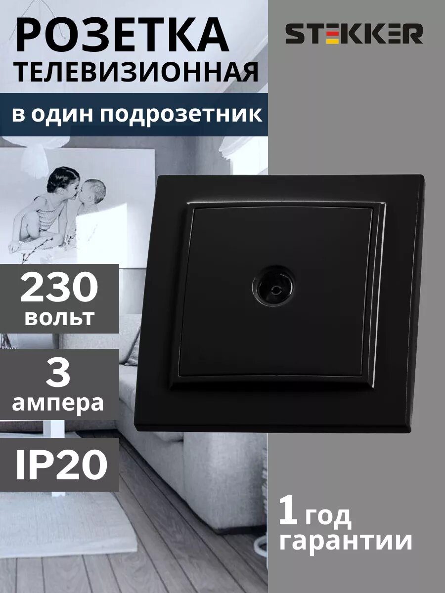 Розетка STEKKER Эрна, встраиваемая, телевизионная, черная информация: