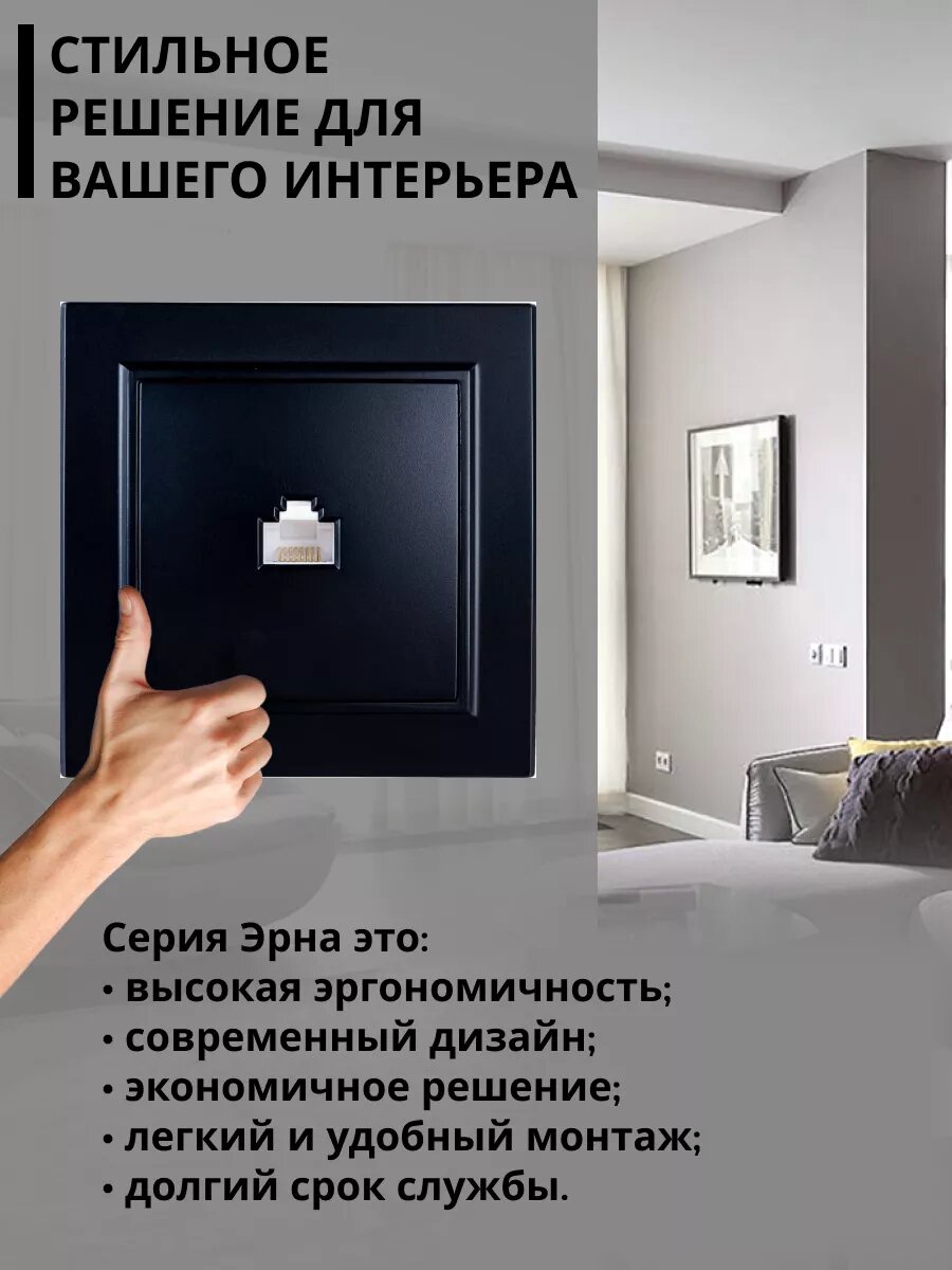 Розетка STEKKER Эрна, встраиваемая, компьютерная RJ-45, черная информация: