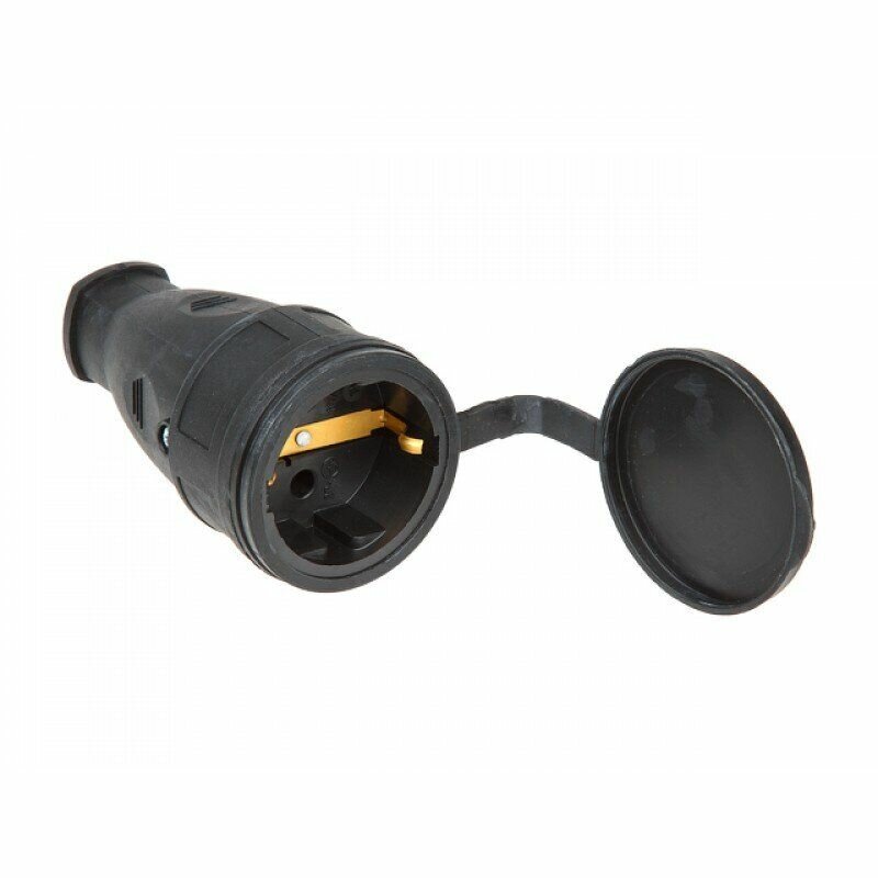 10 цен на Розетка переносная уличная каучуковая с крышкой, с заземлением влагозащищенная одноместная РА 16-005 УХЛ4, черный, 2шт