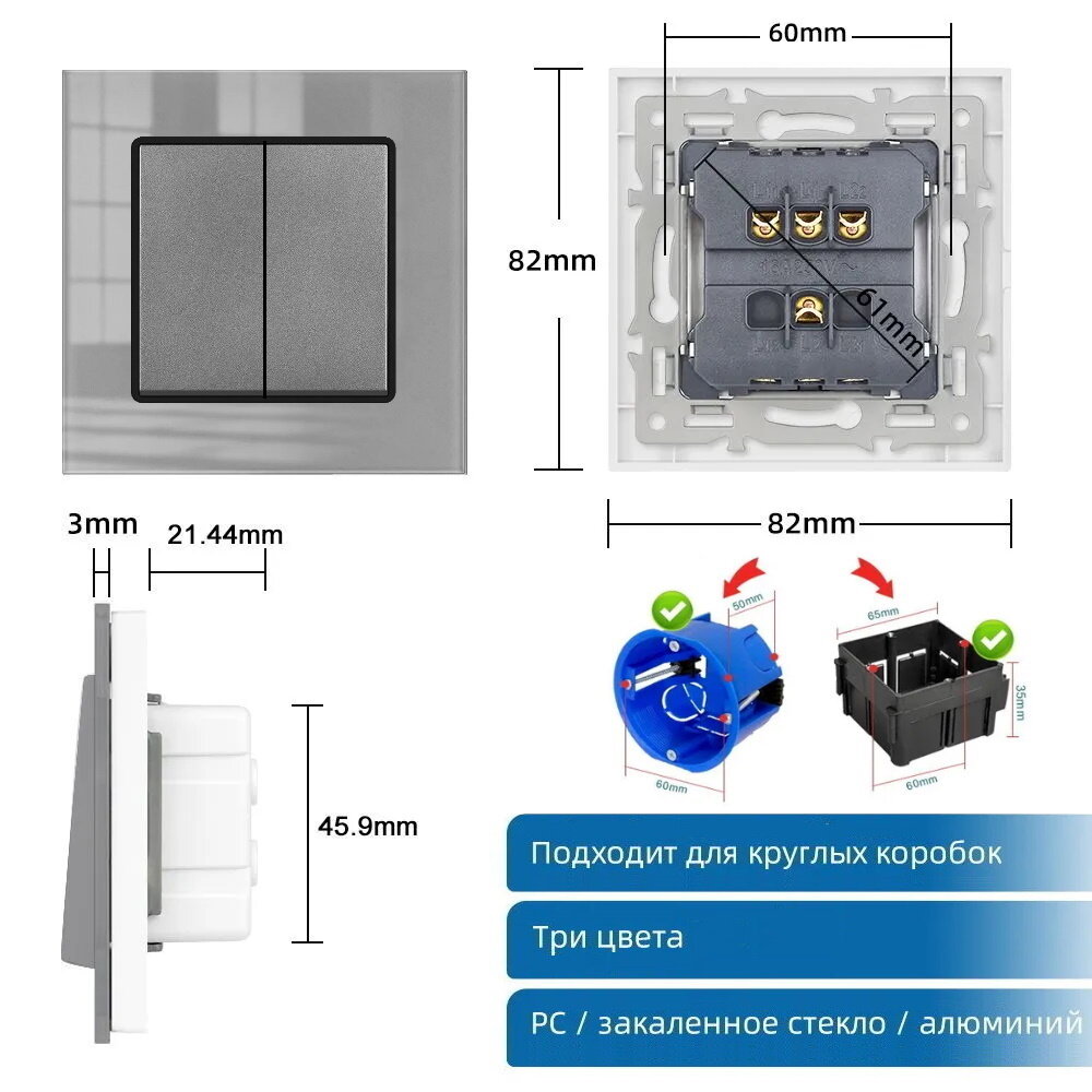 10 цен на Выключатель двухклавишный, рамка из закаленного стекла, серый