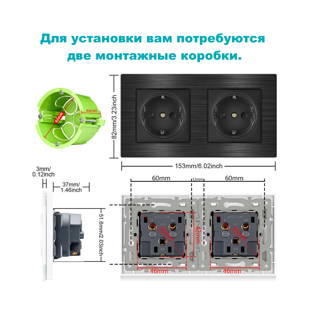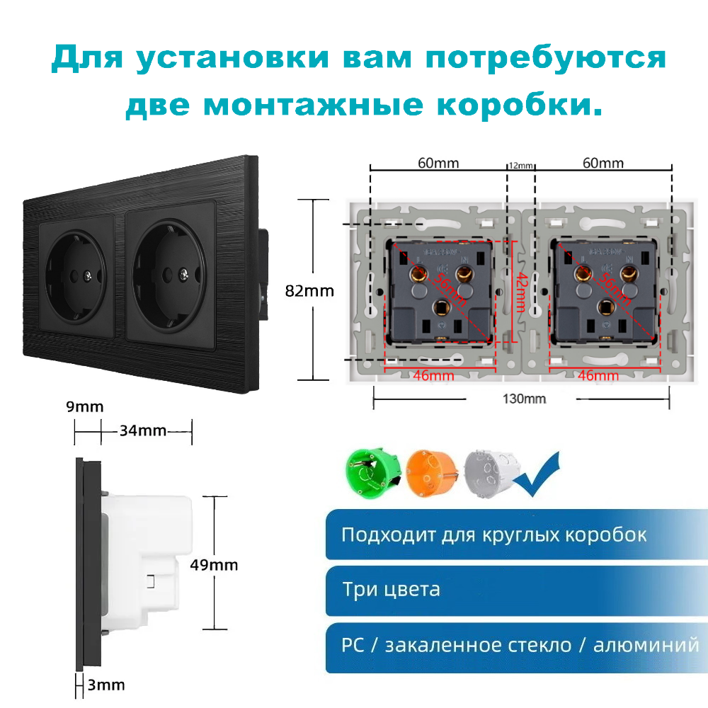 Отзывы на Розетка двойная 220в 16А рамка из металла на 2 пост алюминий, чёрный