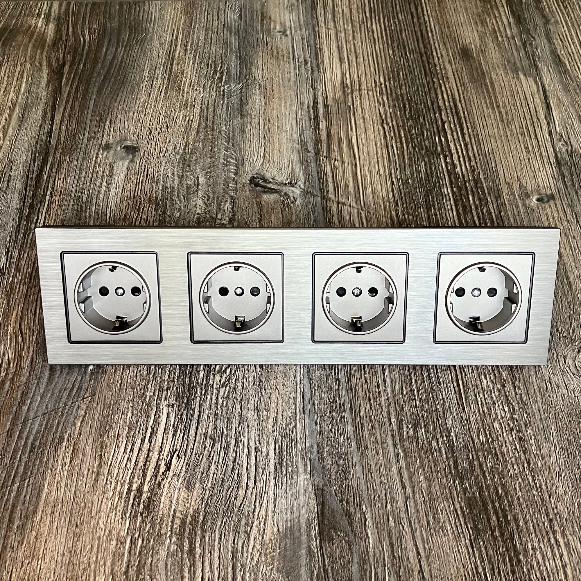 Отзывы на Розетка четверная 16А 250В, рамка из металла на 4 поста алюминий, Светло-серый