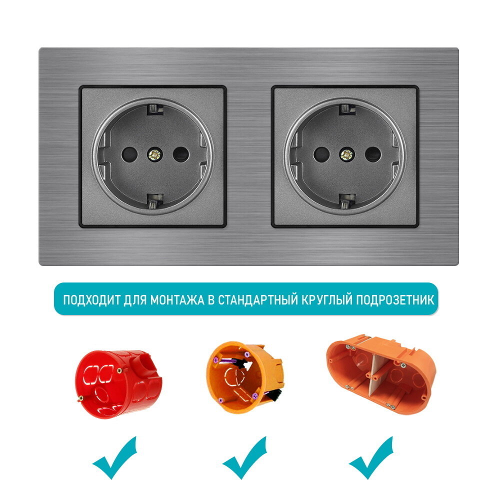 Отзывы на Розетка двойная 220в 16А рамка из металла на 2 пост алюминий, Светло-серый