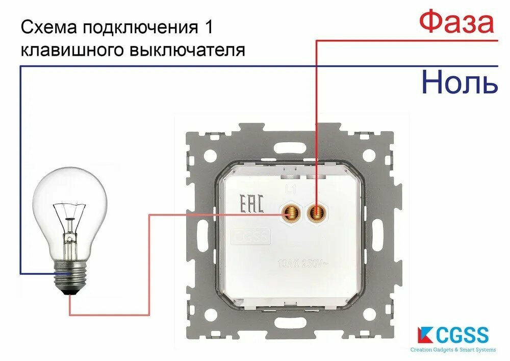 Выключатель одноклавишный белый CGSS Эстетика GL-W101-WCG