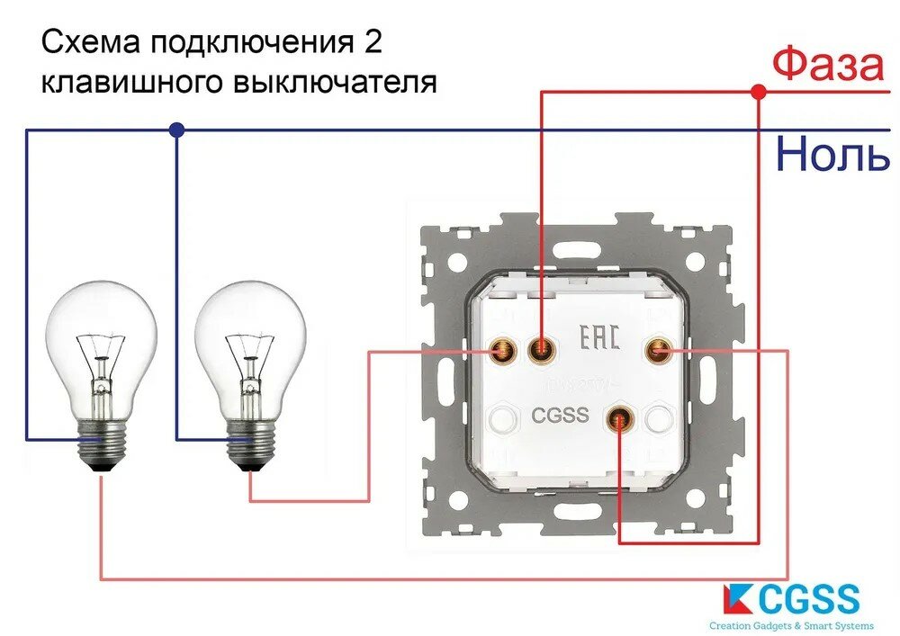 Выключатель двухклавишный белый CGSS Эстетика GL-W102-WCG 371 ₽