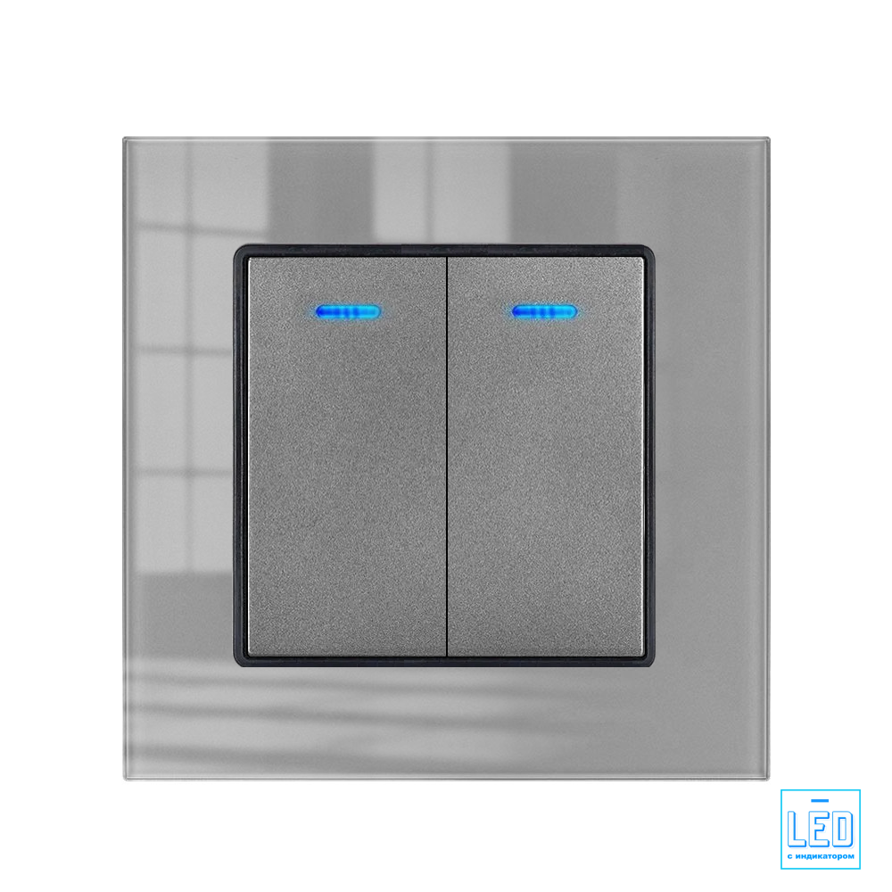 10 цен на Выключатель двухклавишный с подсветкой, рамка из закаленного стекла, серый