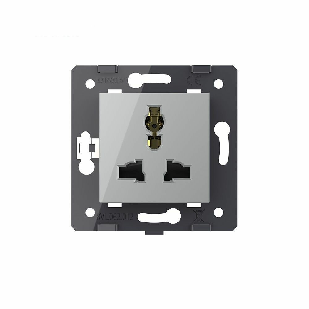 Механизм розетки электрической с заземлением защитными шторками универсальная 16A, цвет серый LIVOLO ORIGINAL информация: