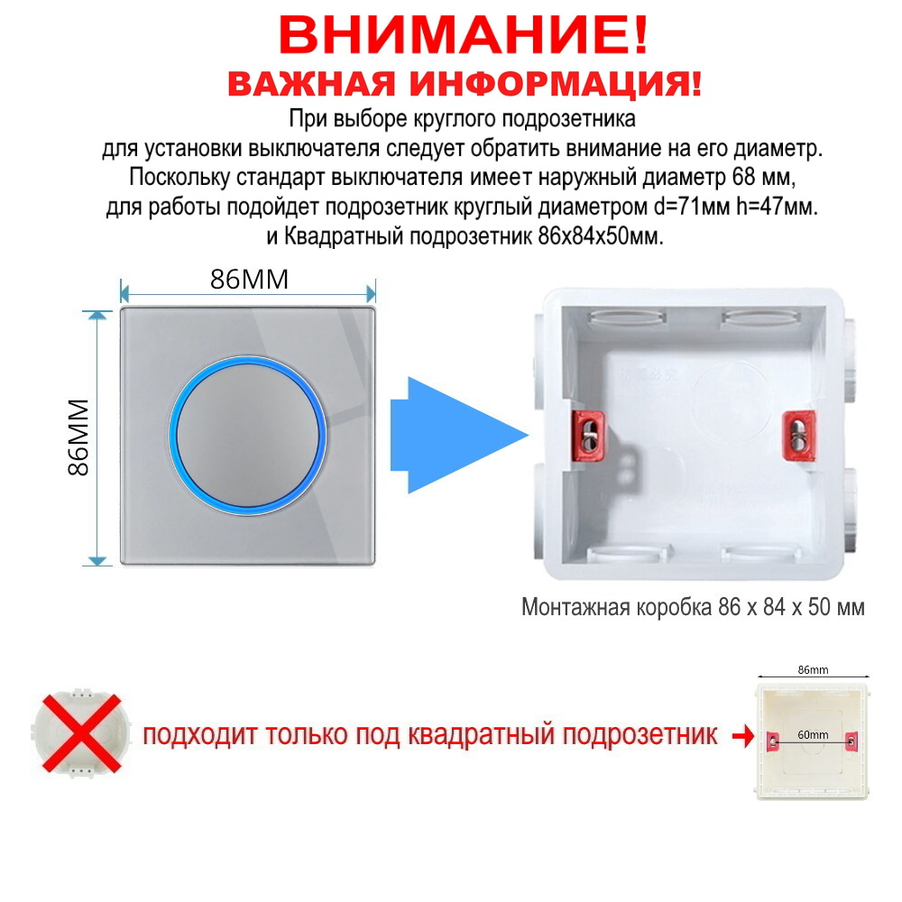 Отзывы на Выключатель одноклавишный с подсветкой, кнопочный, рамка стекло Серый