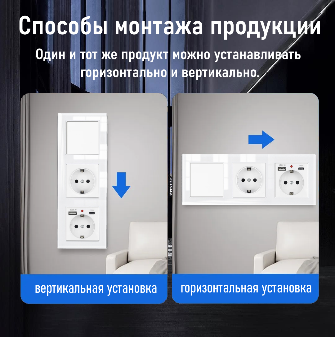 Отзывы на Одноклавишный выключатель с двойной розеткой и 2-мя USB и Type-C, рамка стекло, цвет белый.