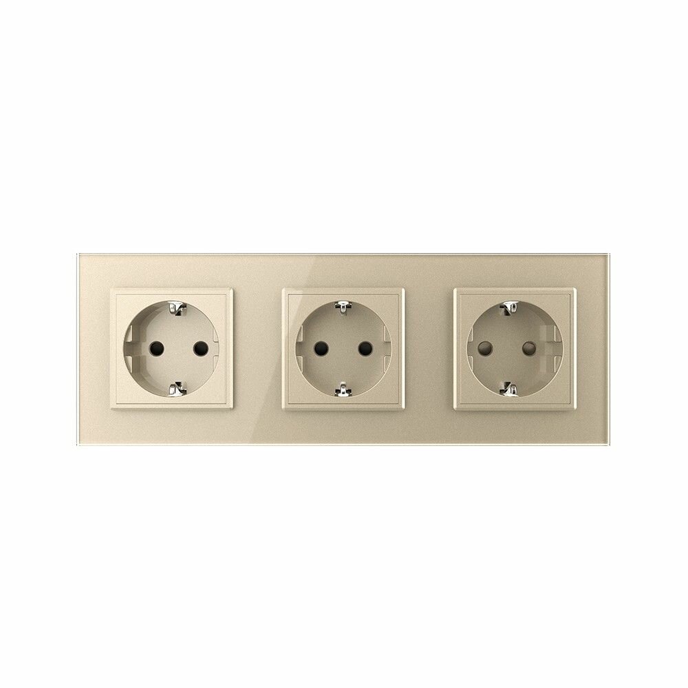 Набор из трех механизмов розеткок электрических с заземлением защитными шторками 16A, цвет золотой LIVOLO ORIGINAL 1 296 ₽
