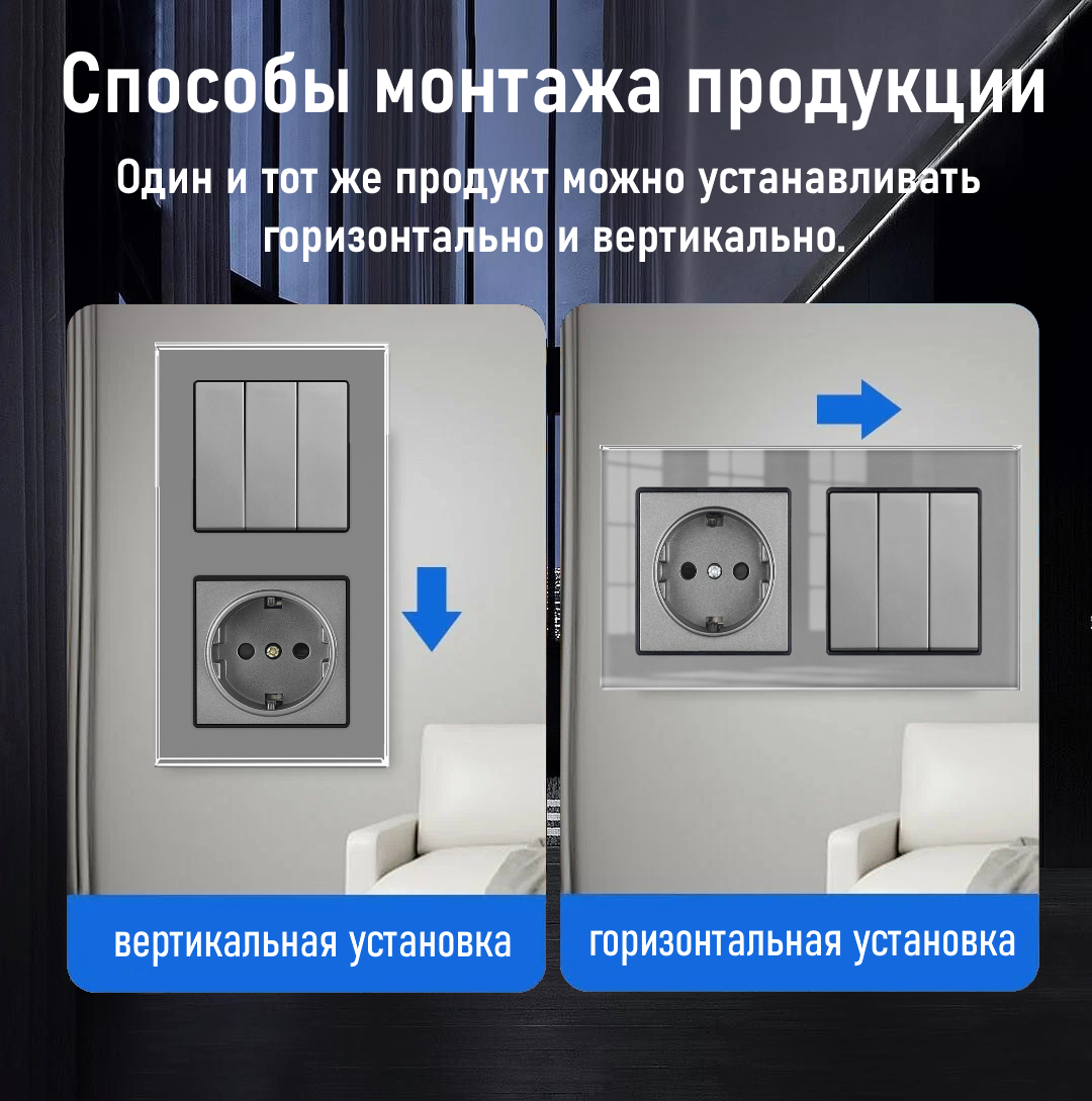 Отзывы на Блок розетка с трехклавишным выключателем в одном корпусе (Проходной), рамка стекло, цвет серый.