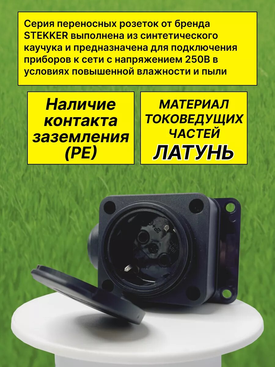 Розетка колодка STEKKER, каучуковая, 1 гнездо, с заземлением, с крышкой информация: