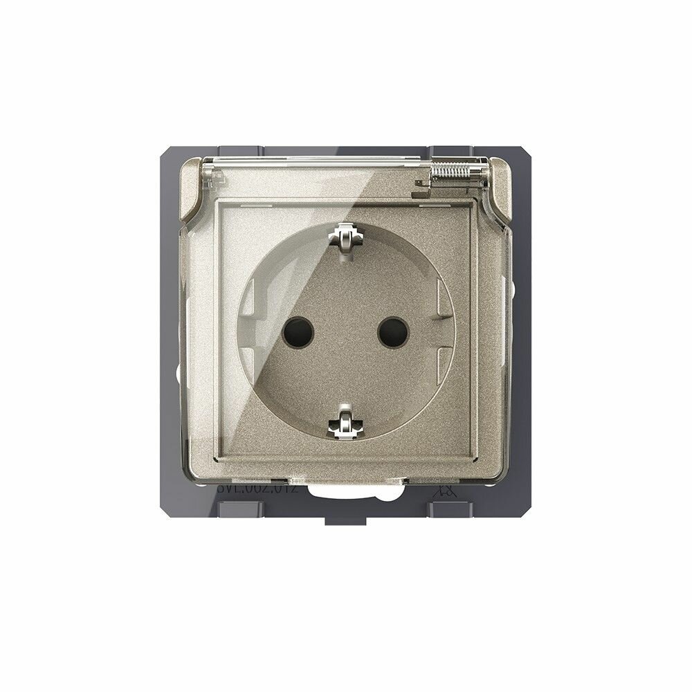 Механизм розетки электрической с заземлением защитными шторками с крышкой IP44 16A, цвет шампань LIVOLO ORIGINAL информация: