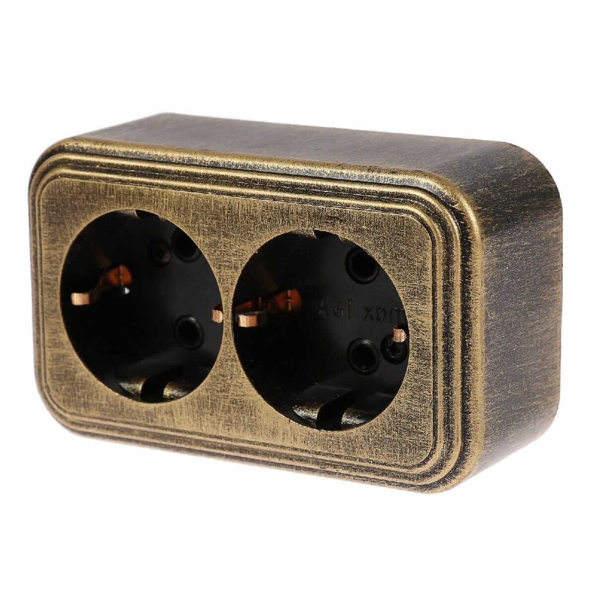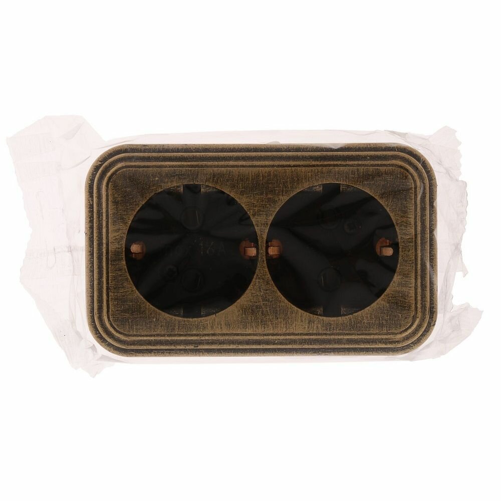 Розетка накладная наружней открытой установки двухместная RA 16-238-ЧБ, с заземлением, черная под бронзу, 2 шт 462 ₽