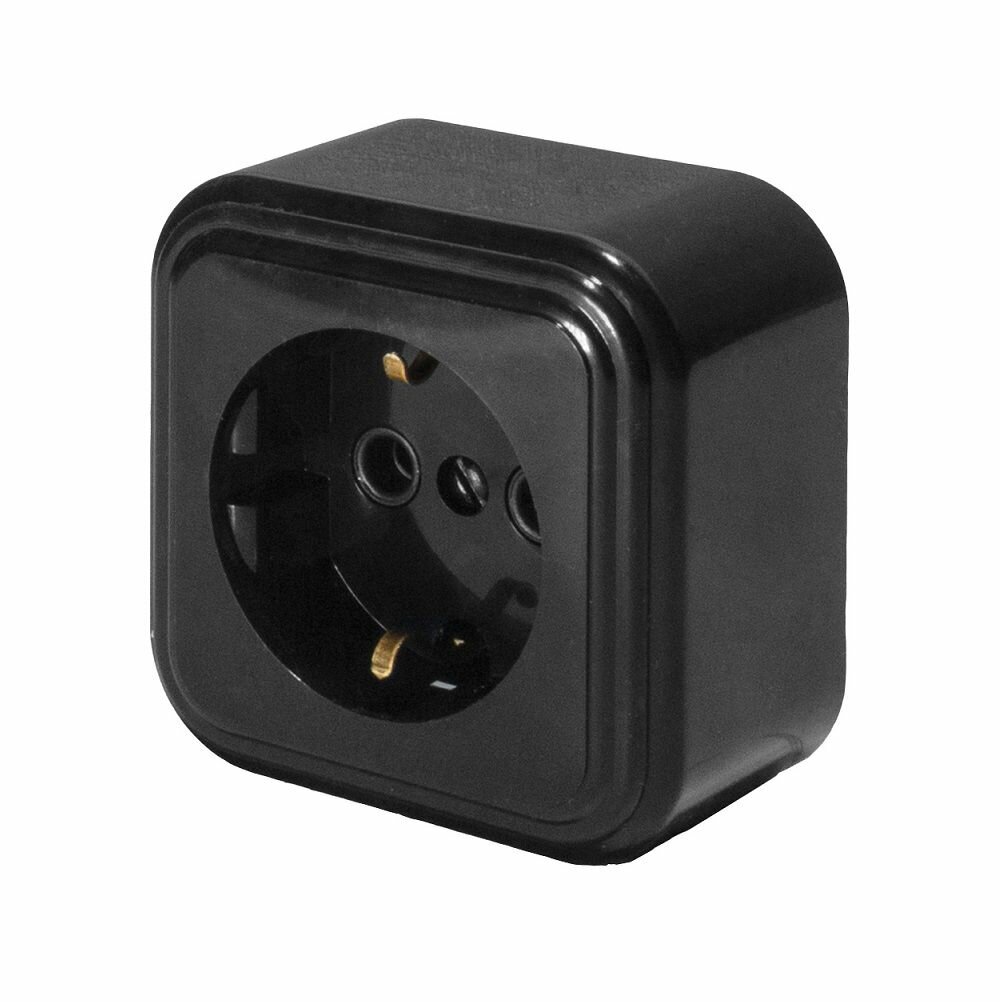 Розетка накладная наружной установки, одноместная с заземлением RA 16-133-Ч, пластик АВС, 250В, 16А, IP20, черный, 2 шт информация: