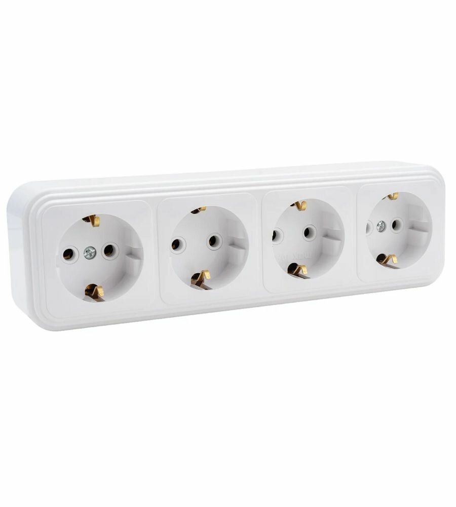 Отзывы на Розетка накладная наружней открытой установки четырехместная RA 16-466-Б, с заземлением, белая