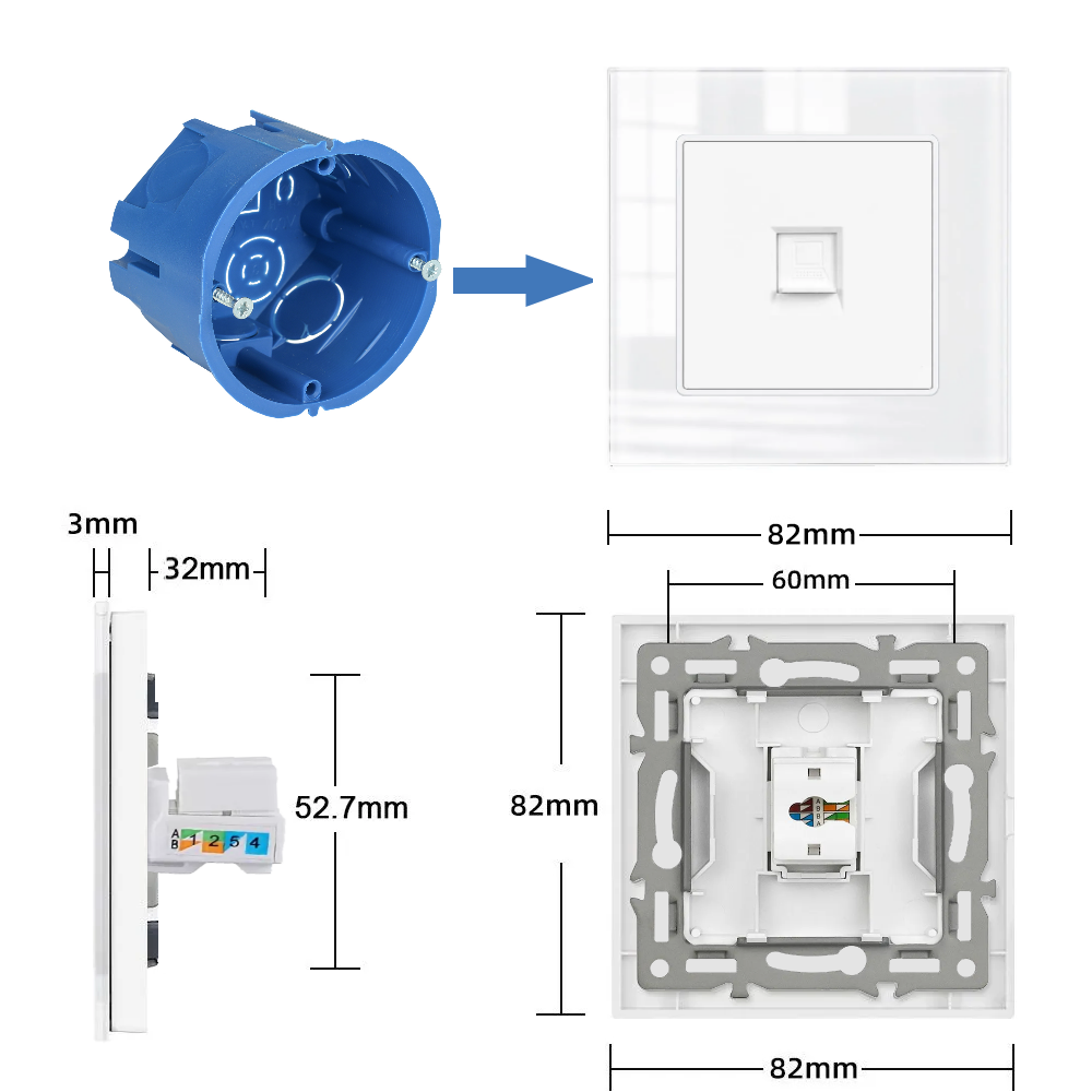 Отзывы на Розетка компьютерная одинарная RJ45 6-й кат. рамка стекло, 82*82*8 мм, цвет белый