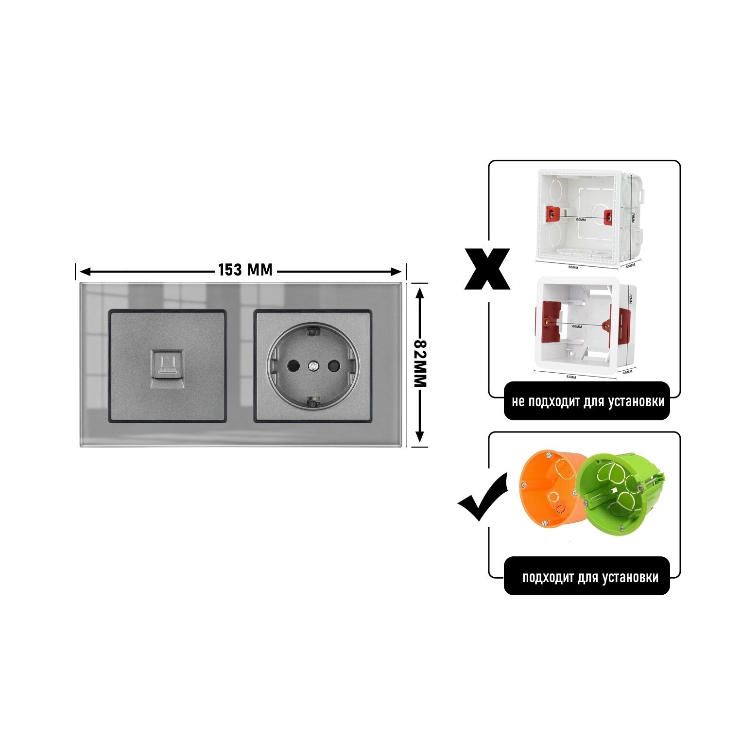 Отзывы на Розетка двойная с интернетом RJ-45 CAT6, 2 поста, рамка стекло, 153*82*8 мм, цвет серый