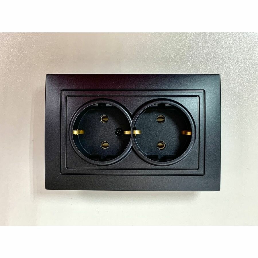 Отзывы на Розетка двухместная скрытой установки 16А, 250В штепсельная с заземляющим контактом, серия УТ, графит, (РС16-348)