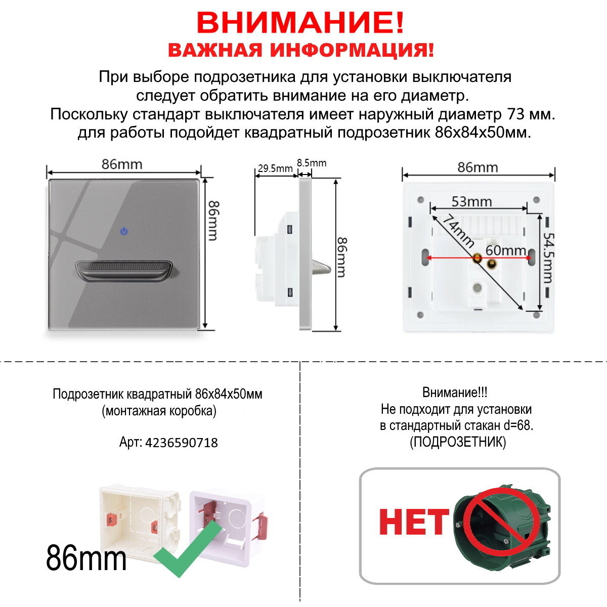 Выключатель одноклавишный с подсветкой, рамка стекло Серый информация: