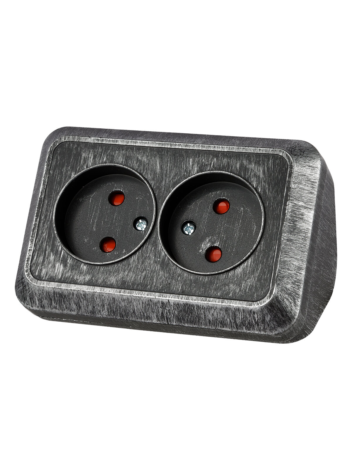 Отзывы на Розетка угловая двойная 2П открытой установки с з/ш IP20 250В 10А серебро "Ладога" TDM