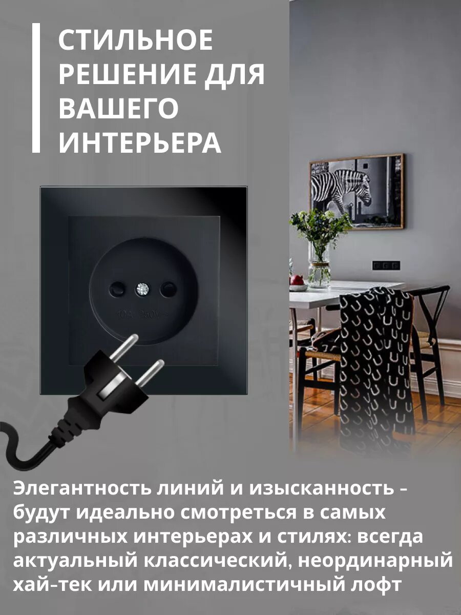 10 цен на Розетка Stekker "Катрин", одинарная, черная, без заземления, со шторками, стекло
