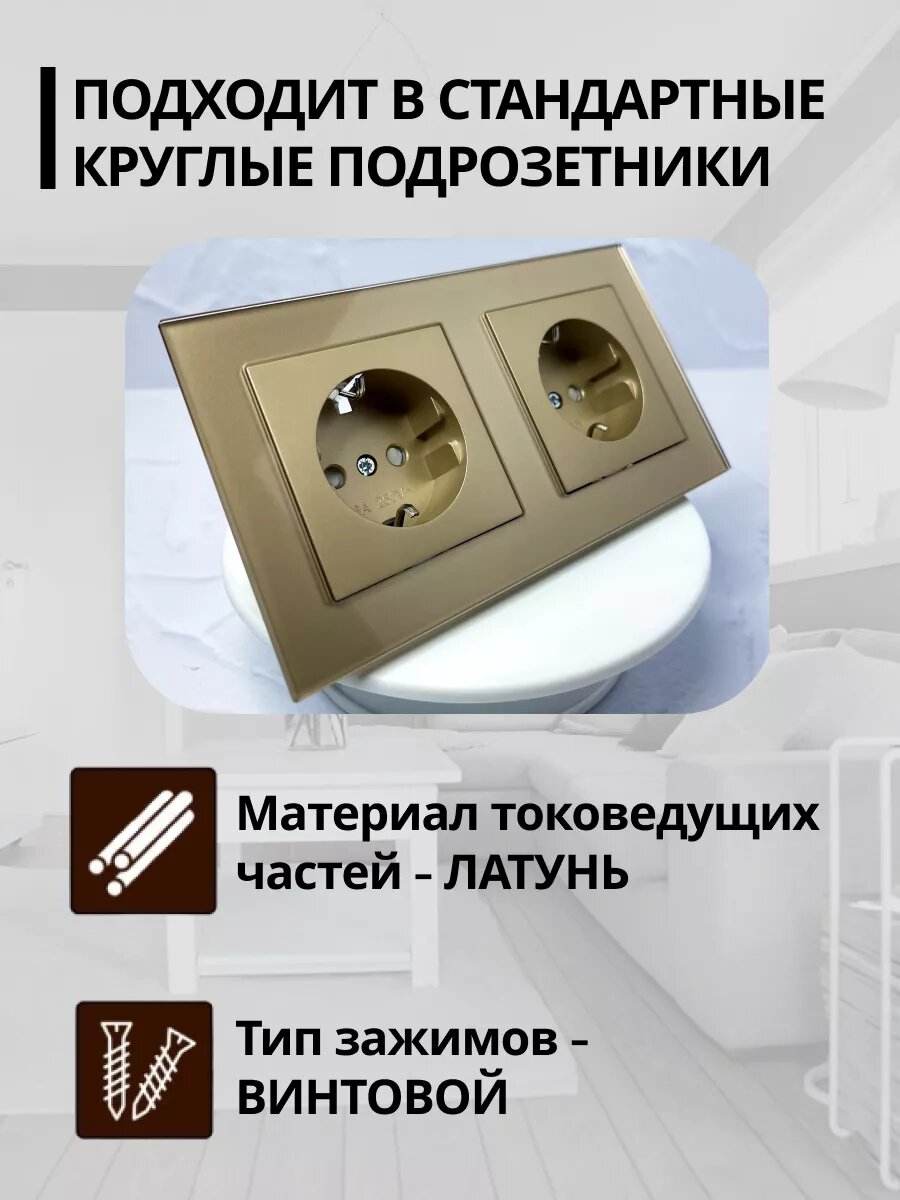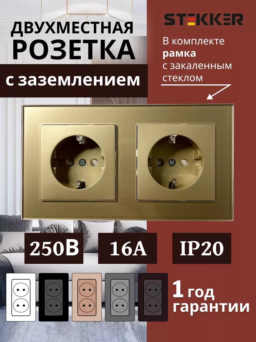 Отзывы на Розетка Stekker "Катрин", двойная, золотая, с заземлением и шторками, стекло