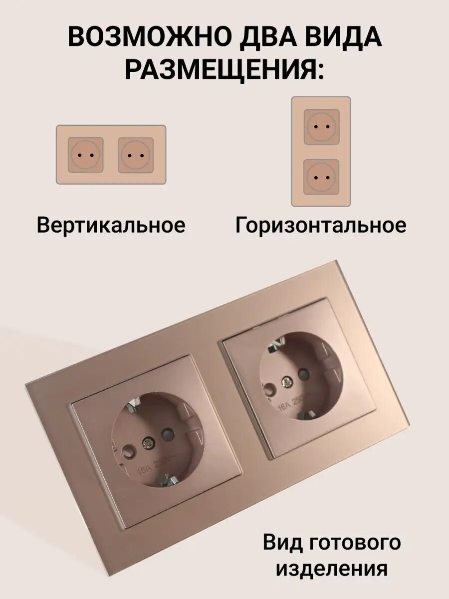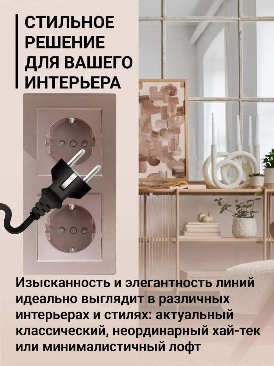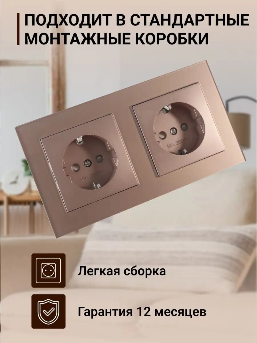 10 цен на Розетка Stekker "Катрин", двойная, шампань, с заземлением и шторками, стекло