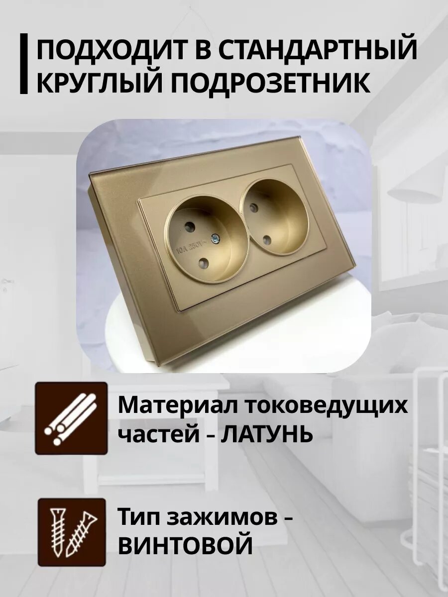 10 цен на Розетка Stekker "Катрин", двойная, золотая, без заземления, со шторками, стекло
