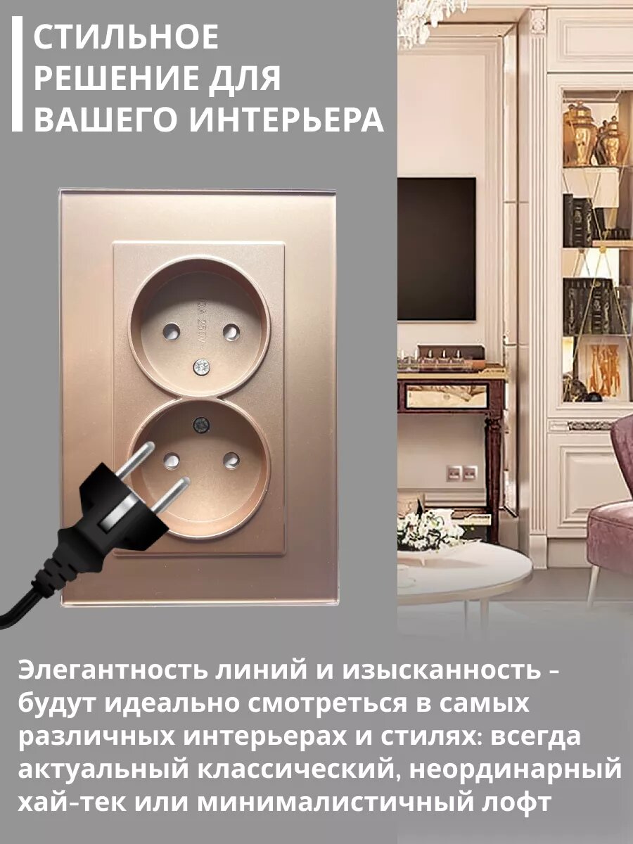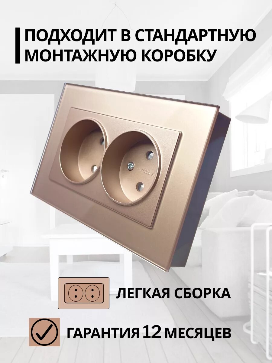 10 цен на Розетка Stekker "Катрин", двойная, шампань, без заземления, со шторками, стекло