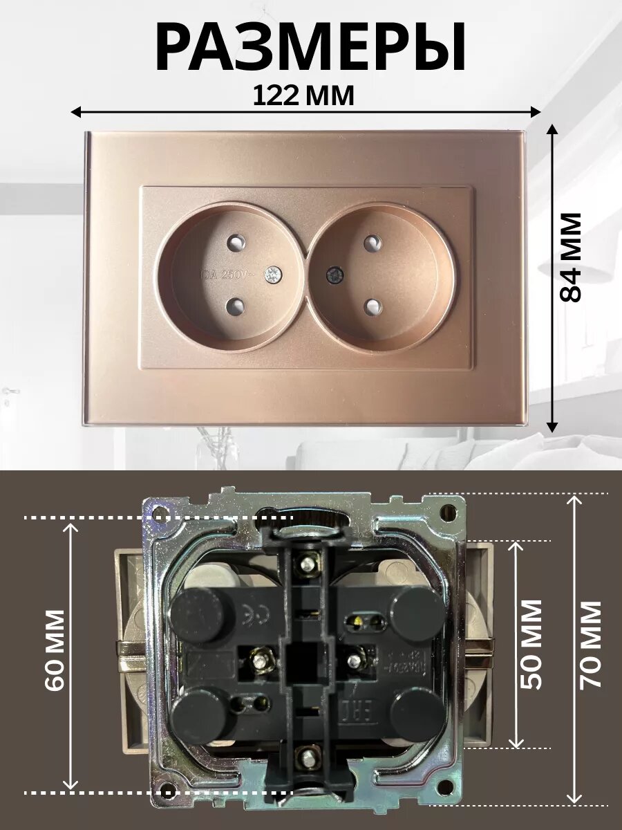 Отзывы на Розетка Stekker "Катрин", двойная, шампань, без заземления, со шторками, стекло
