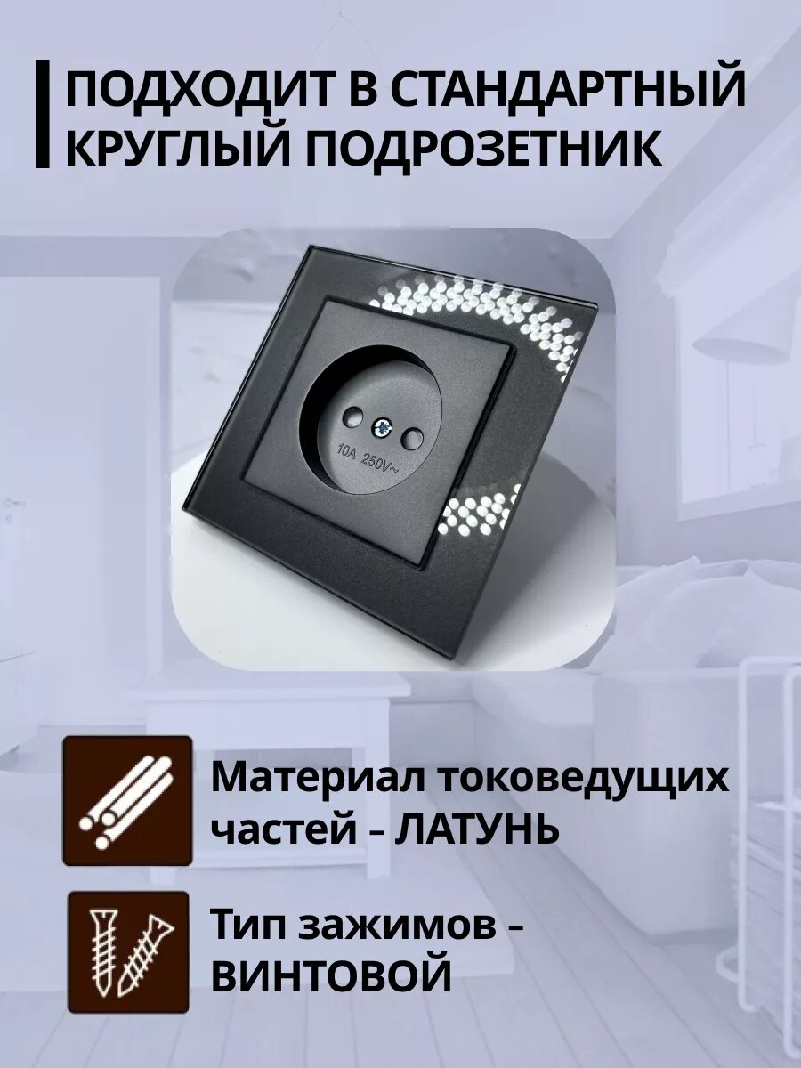 Розетка Stekker "Катрин", одинарная, графит, без заземления, со шторками, стекло информация: