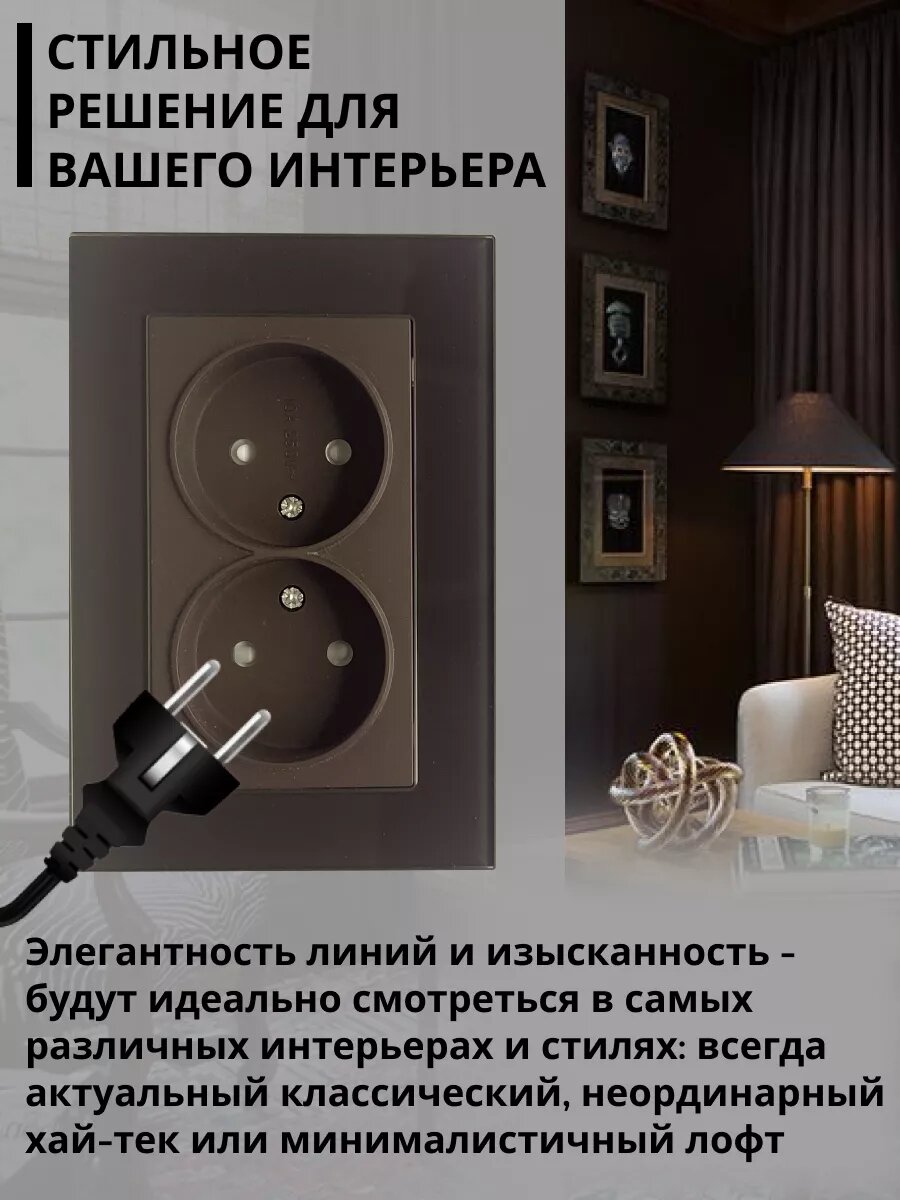 10 цен на Розетка Stekker "Катрин", двойная, шоколад, без заземления, со шторками, стекло