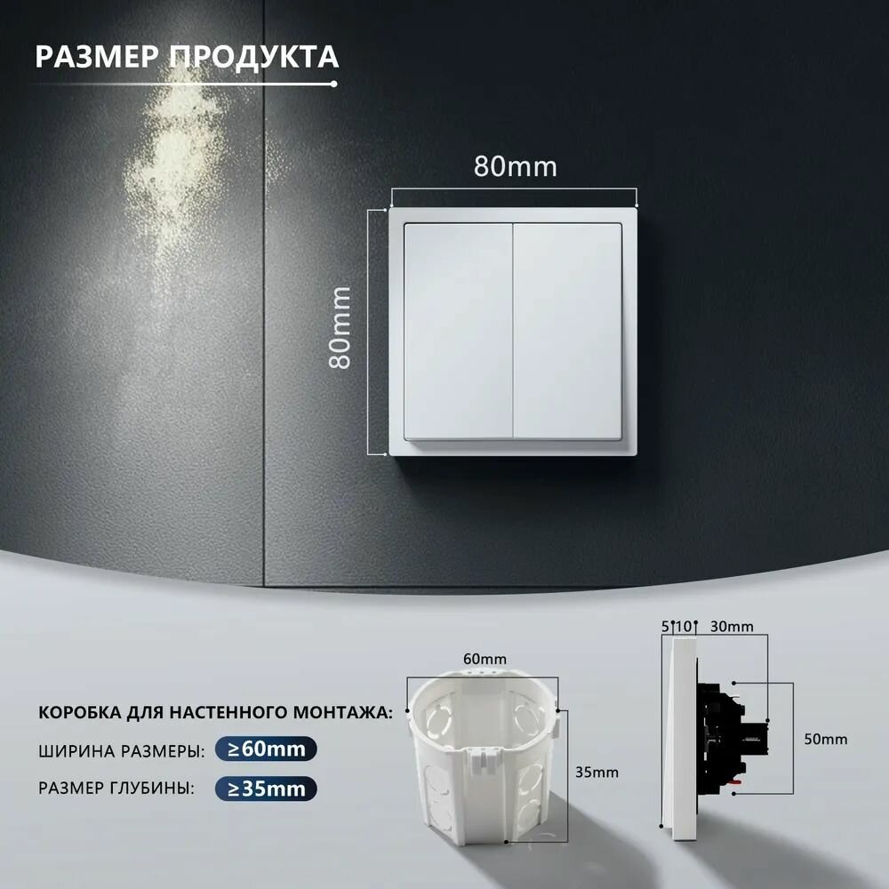 Выключатель echo, 2 клавиши, 1 пост, рамка пластик 81х81мм цвет белый информация: