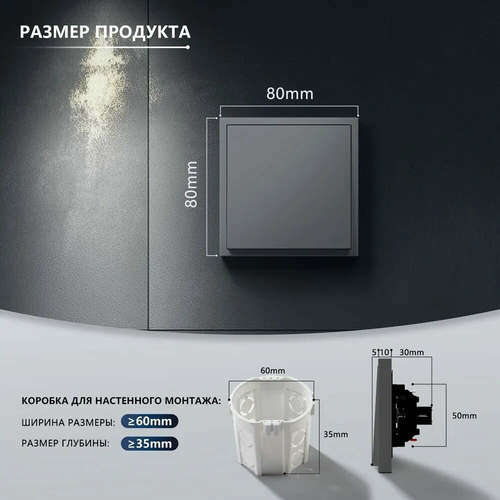 Выключатель echo, 1 клавиша, 1 пост, рамка пластик 81х81мм цвет серый информация: