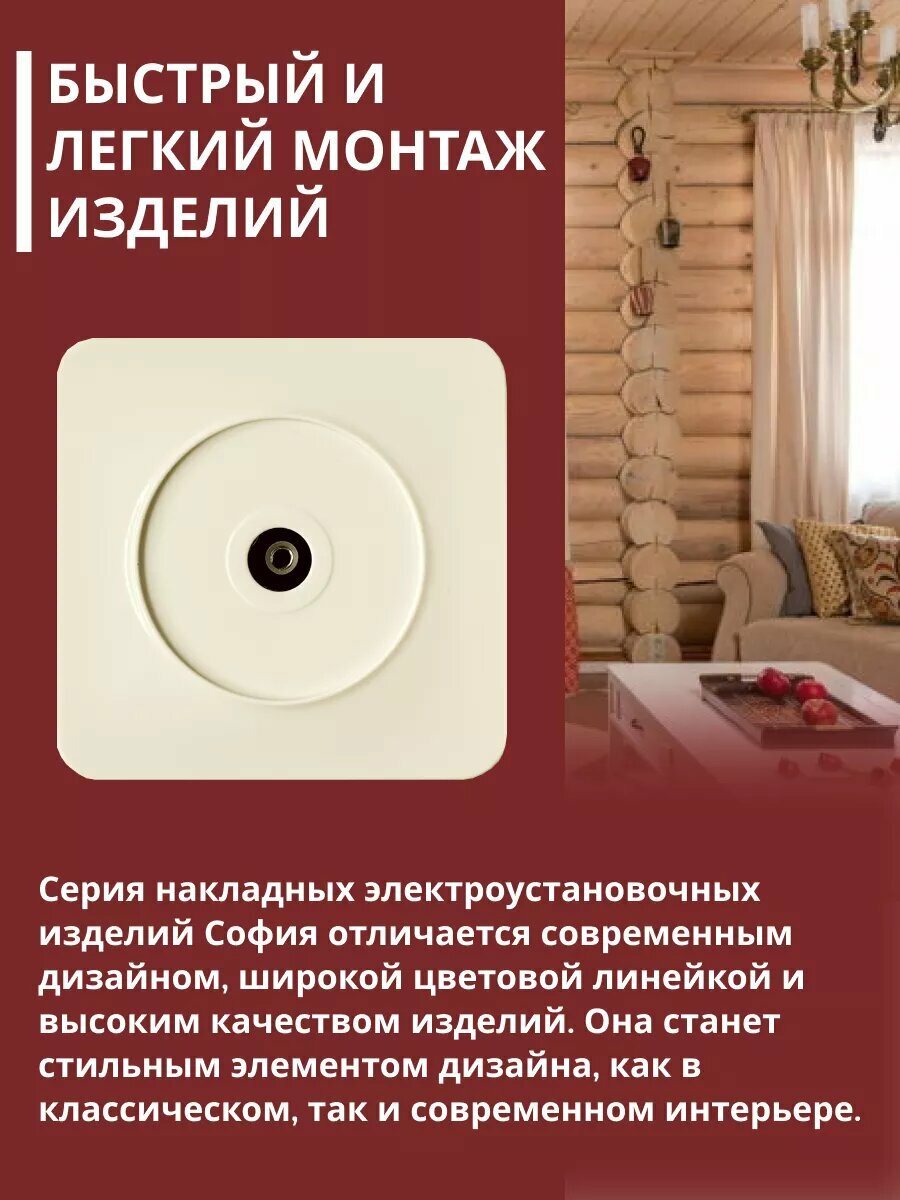 Розетка накладная STEKKER София, телевизионная, IP20, цвет слоновая кость информация: